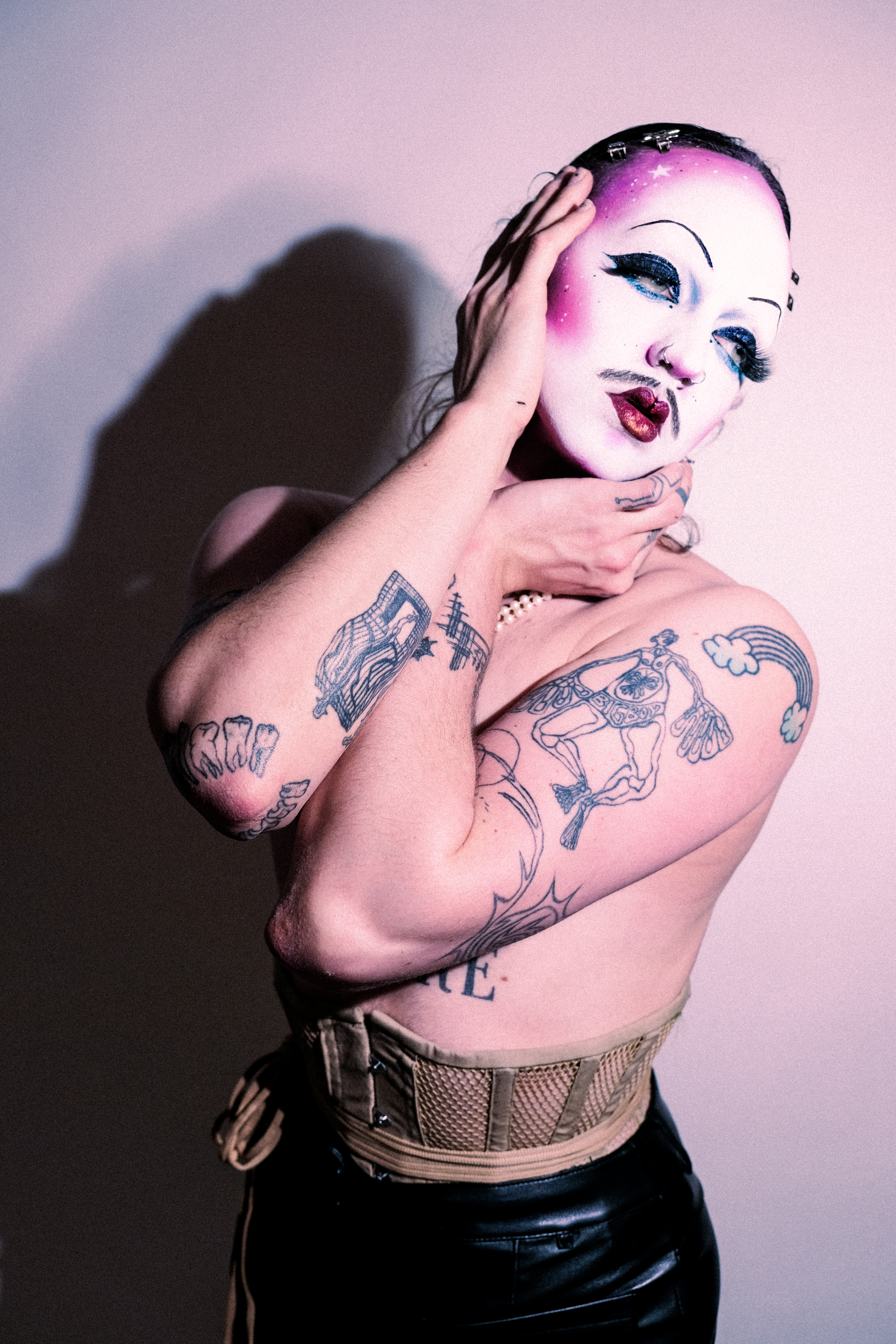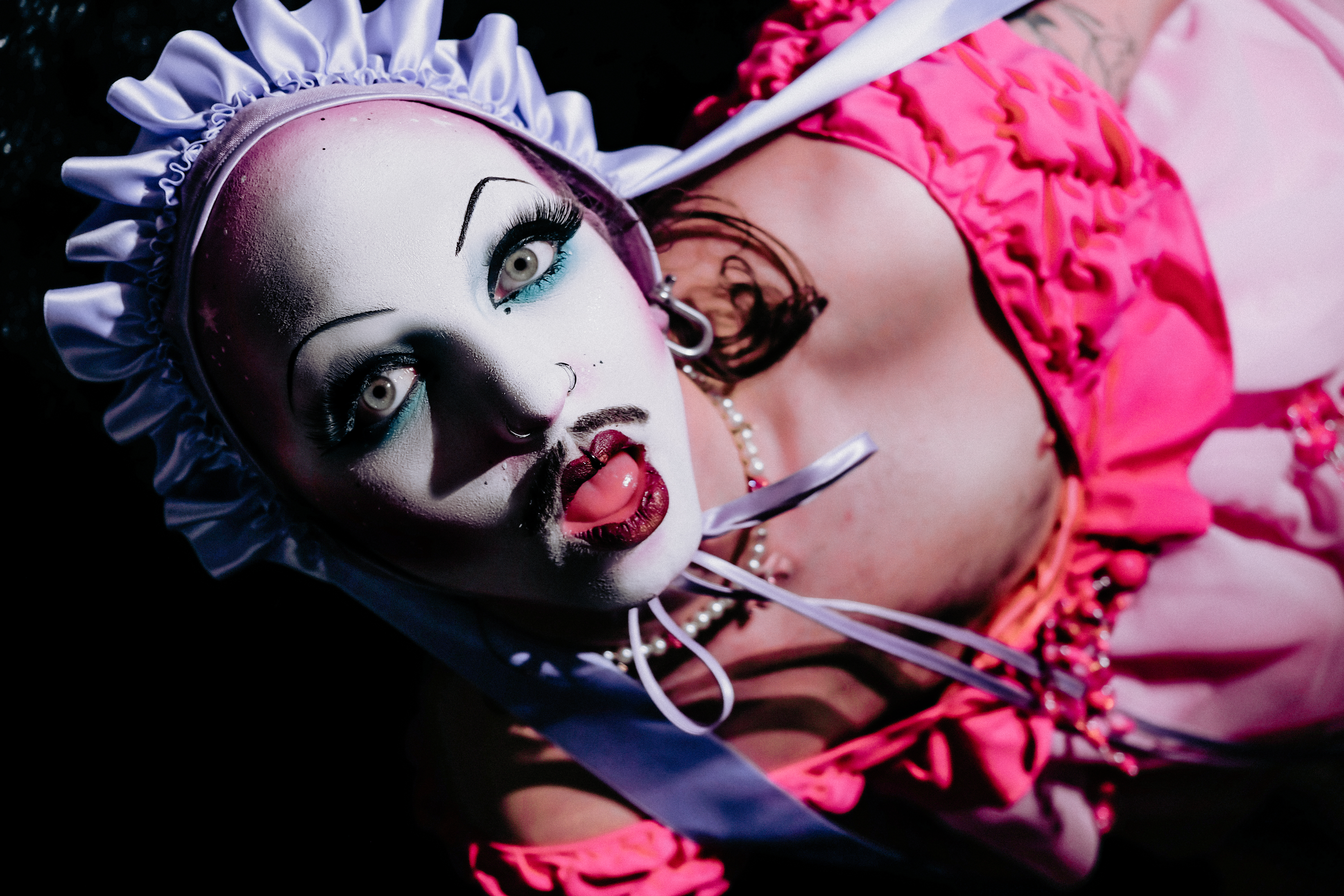The Fool is a multifaceted drag clown. It is a mask, an entity shapeshifting according to the performance. Their work is theatrical, closely intertwined with their trans* identity. Through The Fool, Sascha Cowan performed in underground scenes as well as WHOLE Festival, on the main stage of Pride Montréal and different cities such as Berlin, Paris, Hamburg, Montréal and Zürich.