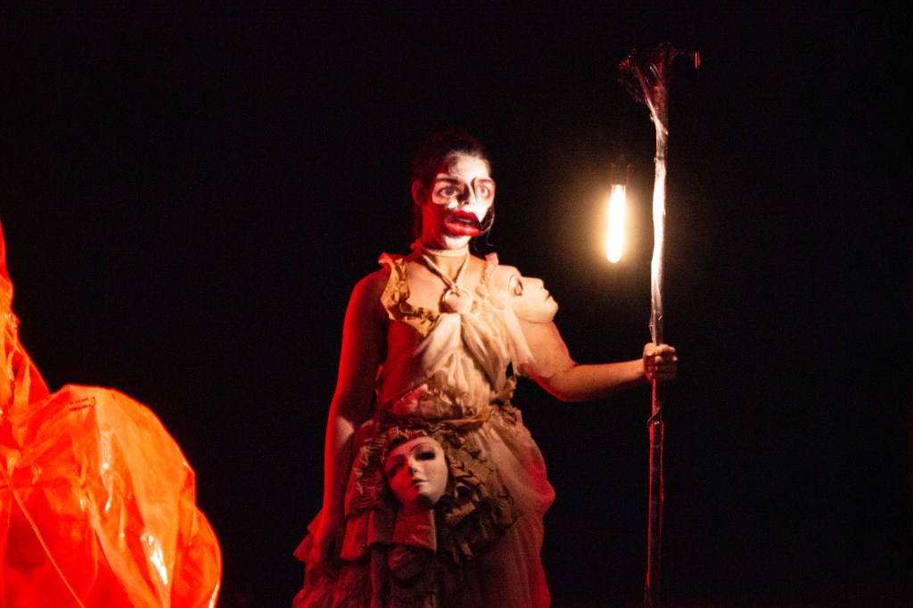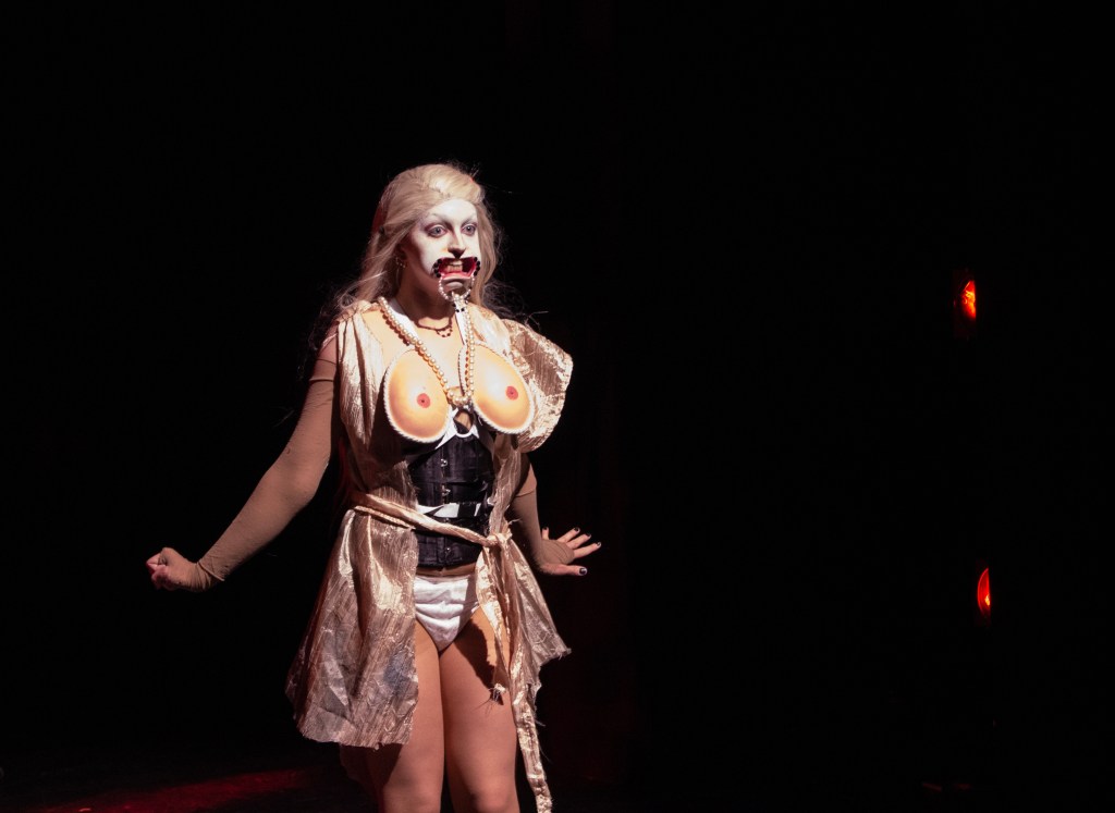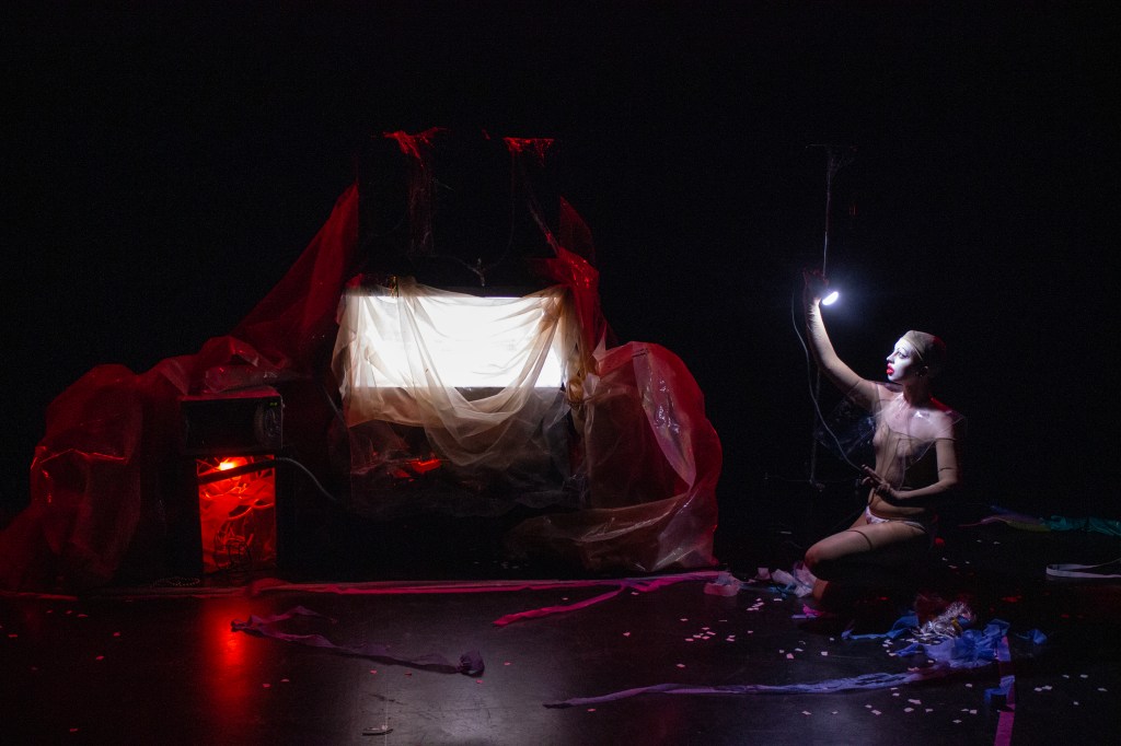 JUST THE WORST TIME OF THE YEAR FOR A REVOLUTION is an adaptation of Heiner Müller’s Die Hamletmaschine, presented at the 2019 Montreal Fringe Festival. It explored post-gender corporalities through the embodiment of abjection, animality, and monstrosity. Partway between stage installation, contemporary dance, and drag, this interdisciplinary piece was selected for the Mainline Creativity award.
