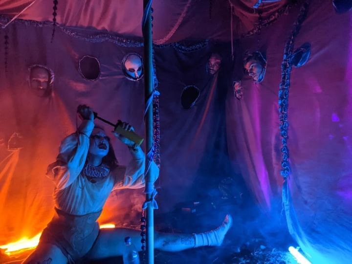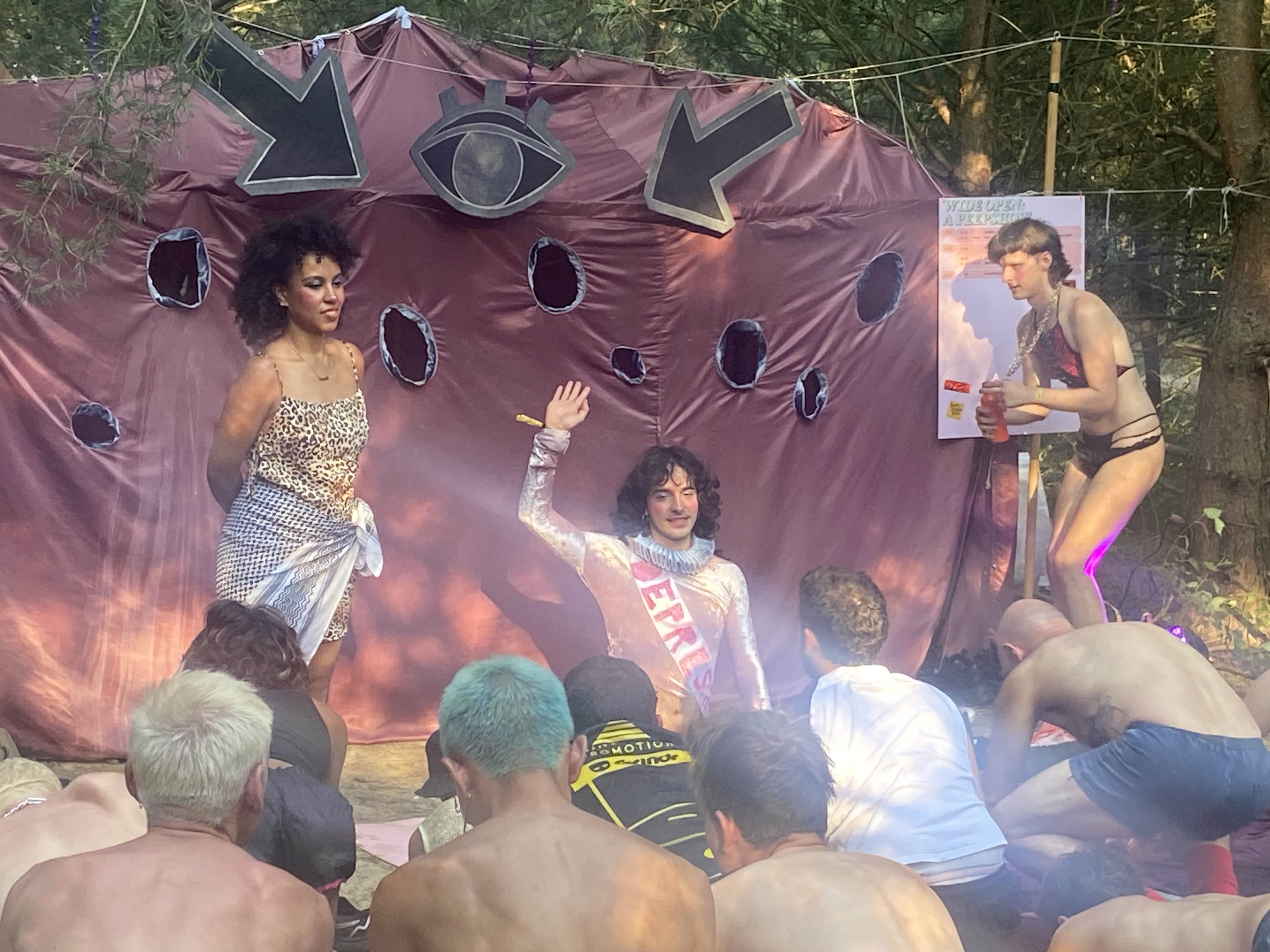 Inside, durational performances unfold as post-pornographic rituals, camp experiments, and deconstructed drag acts. The installation has been featured at Whole Festival (2025, 2024) and Nation of Gondwana (2022), showcasing in-house creations alongside guest performances by artists such as Gutter Gucci, Hassandra, and Iacopo Loliva.